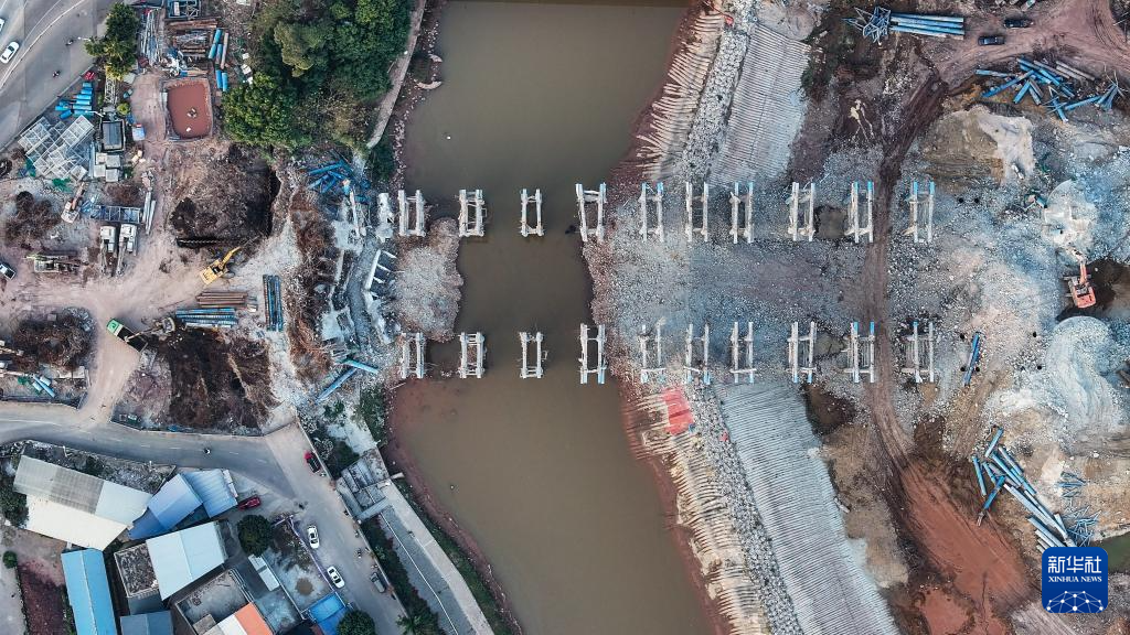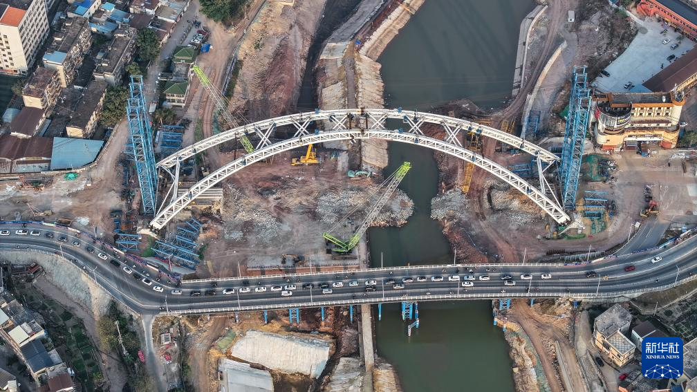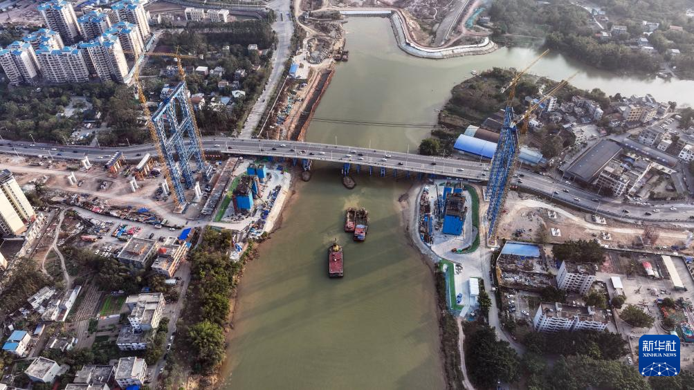2月4日拍摄的建设中的钦州一桥(无人机照片)。