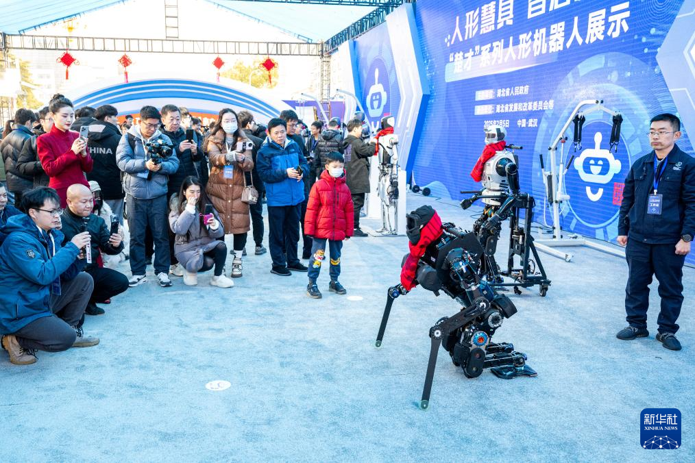 当日,“劳动者”“荆楚”“神农”“天问”“楚宝”等10款楚才系列人形机器人在湖北“全省加快建成中部地区崛起重要战略支点推进大会”上集中亮相。机器人现场展示一项项技能和才艺,呈现湖北人形机器人研发最新成果。