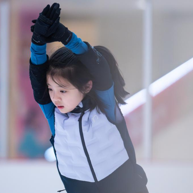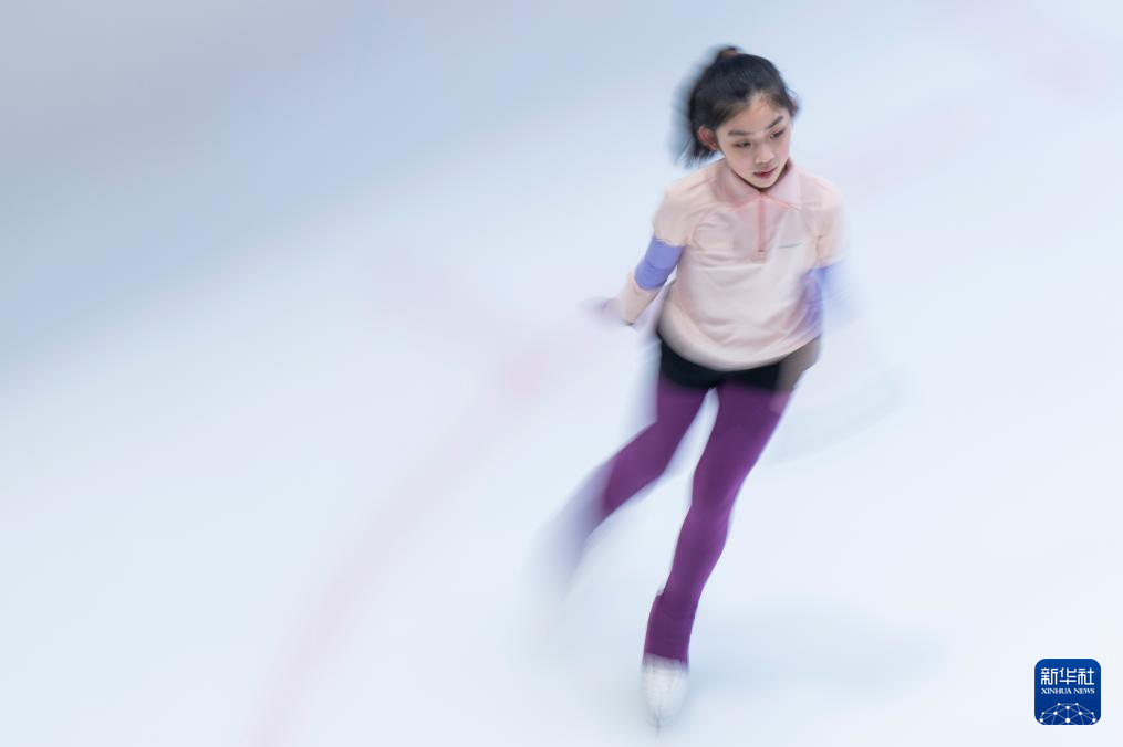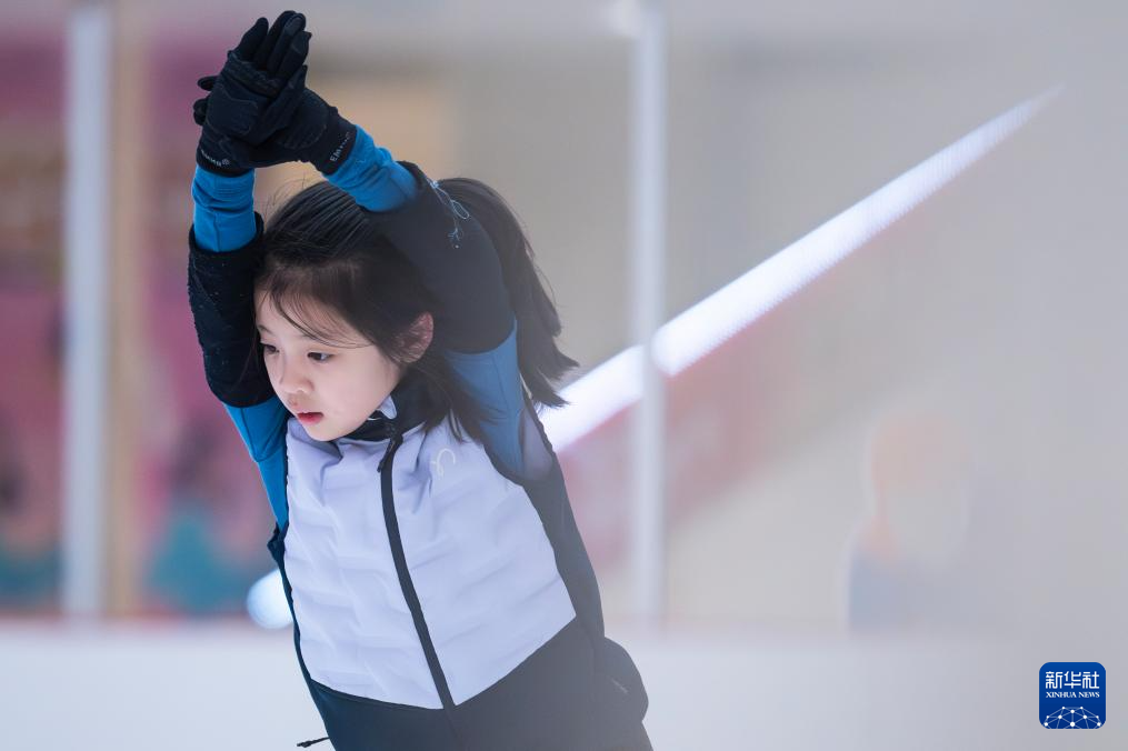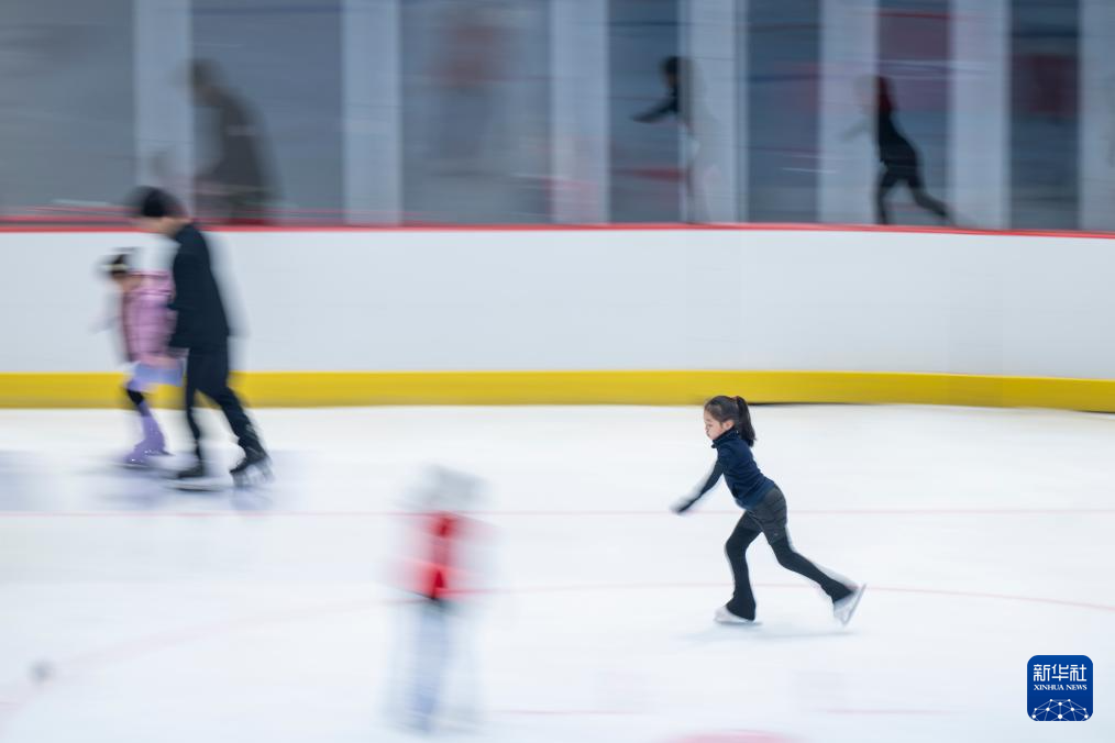 1月21日,小朋友在武汉市冰龙冰上运动中心学习花样滑冰。