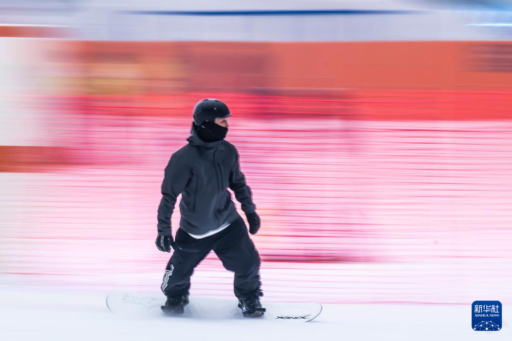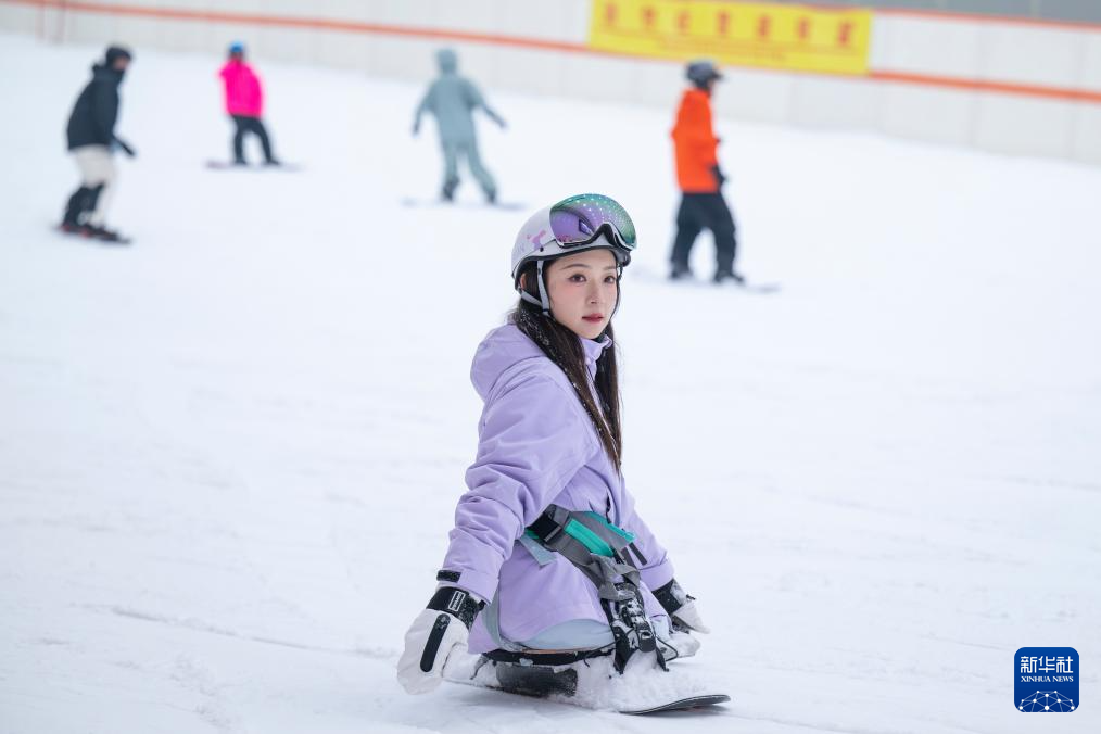 1月22日,游客在武汉市甘露山国际滑雪场滑雪。