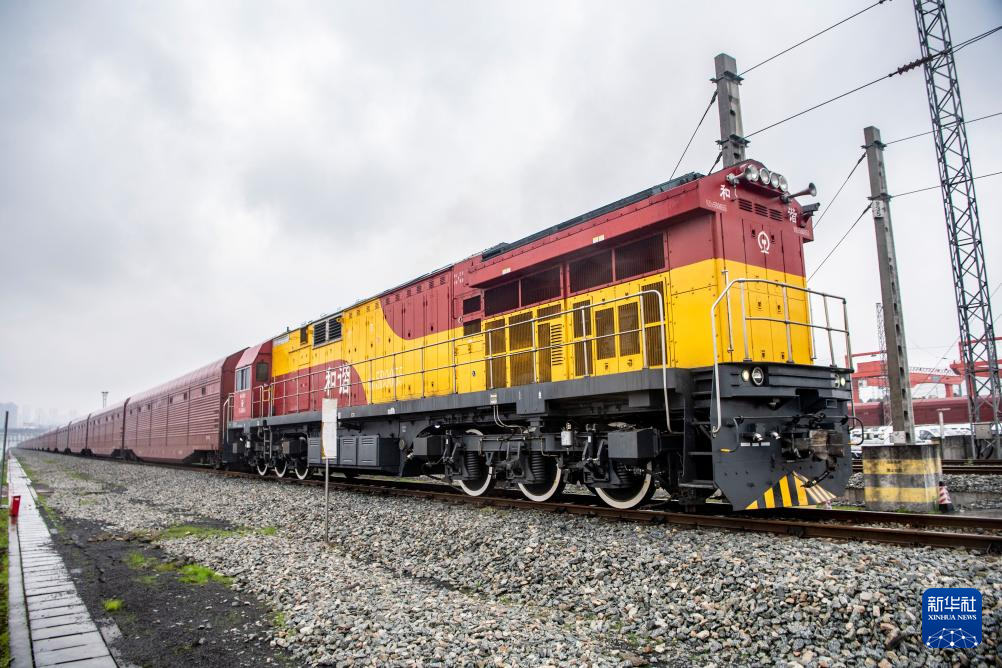 2月6日,“重庆造”整车专列在重庆鱼嘴站等待发车。