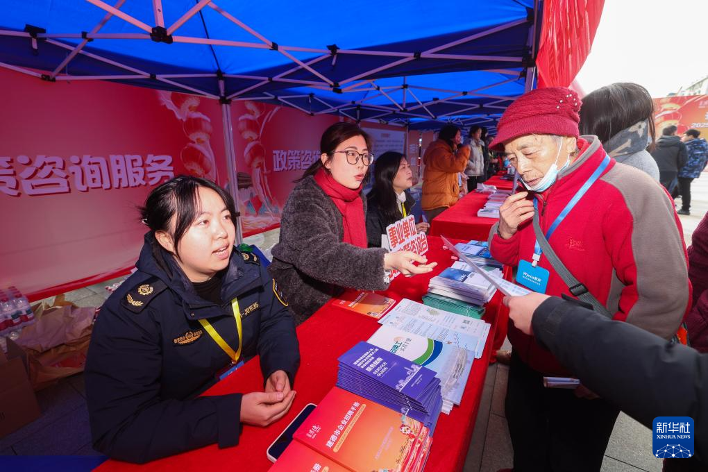 2月6日,建德市劳动保障部门在招聘会现场给求职者提供相关法规的咨询服务。