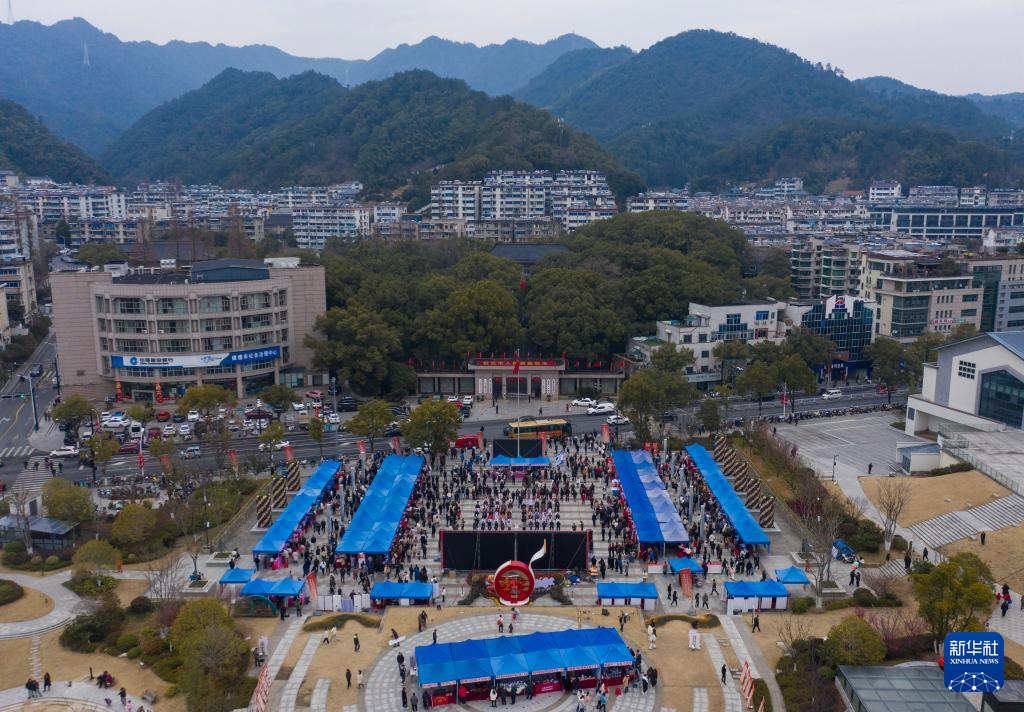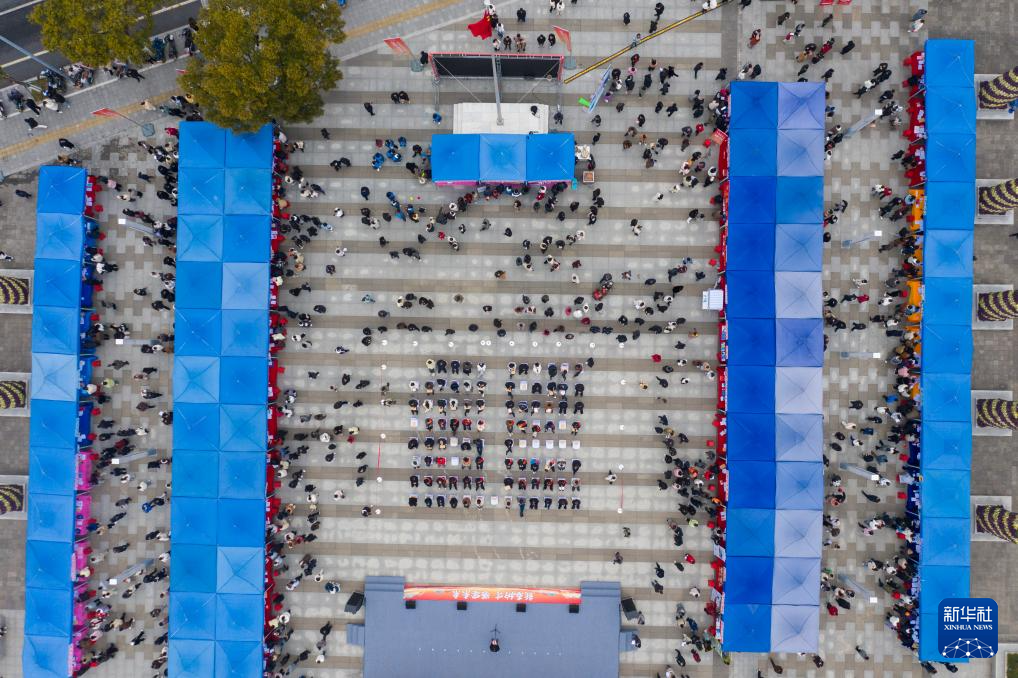 这是2月6日拍摄的建德新春招聘会现场(无人机照片)。
