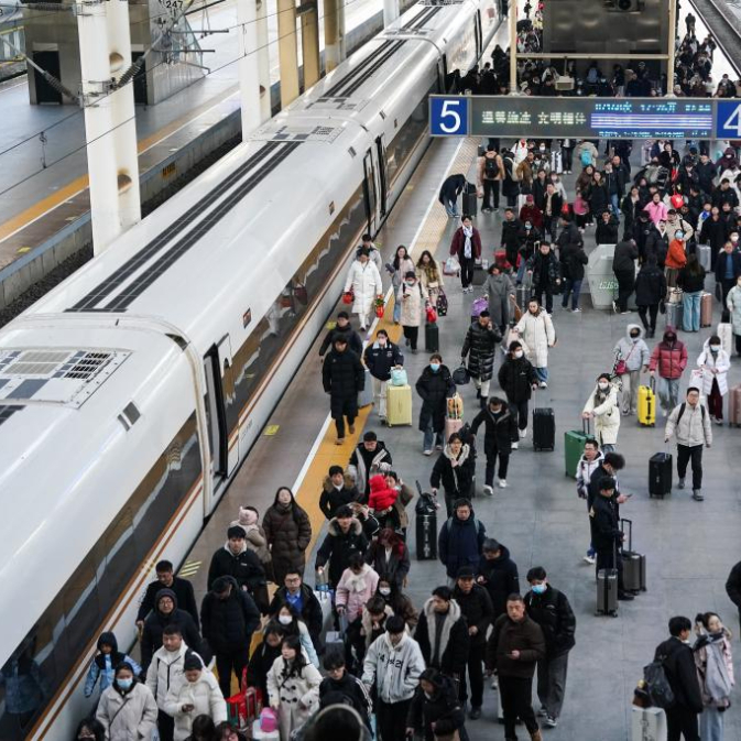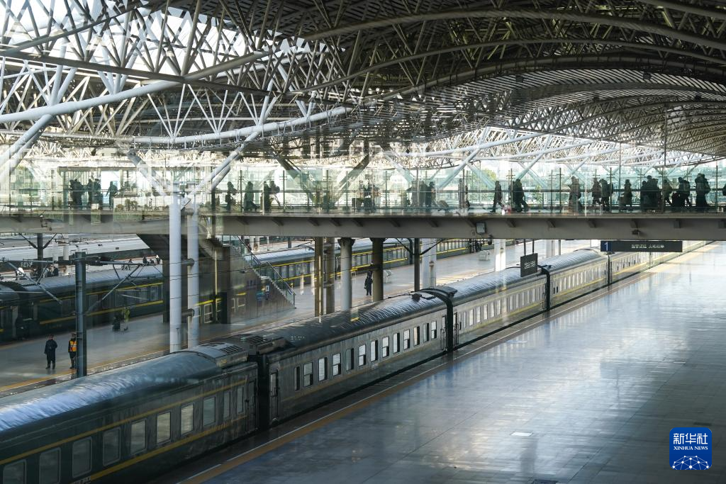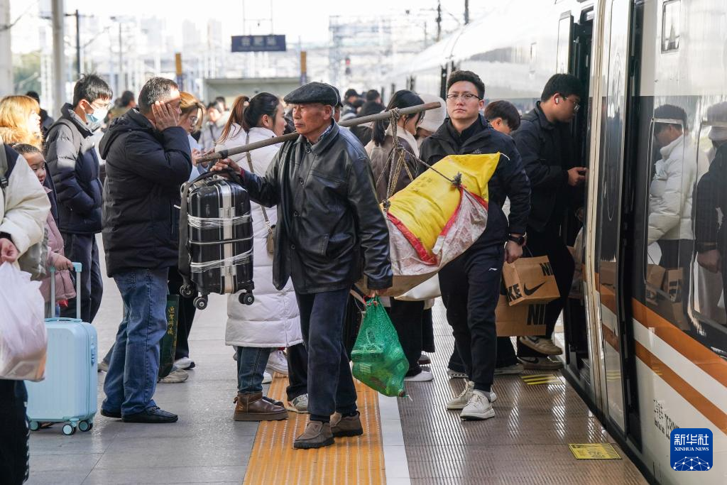 2月7日,旅客在合肥火车站上下列车。