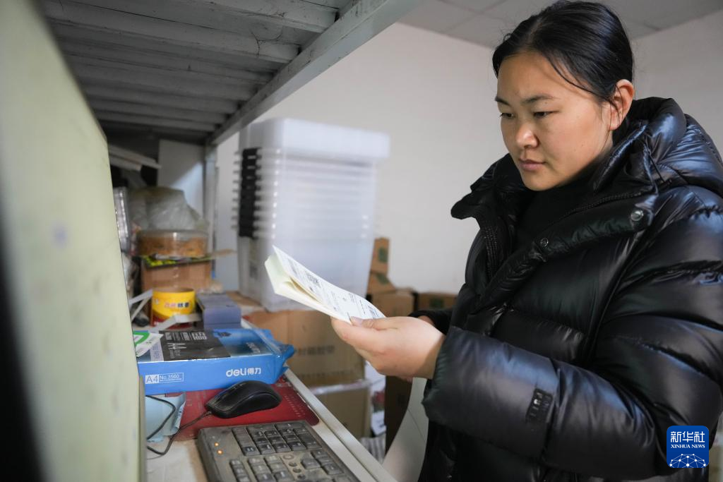 2月6日,贺小贞在湖南省宁乡市肖胜蓝家庭农场核对直播订单,准备发货。