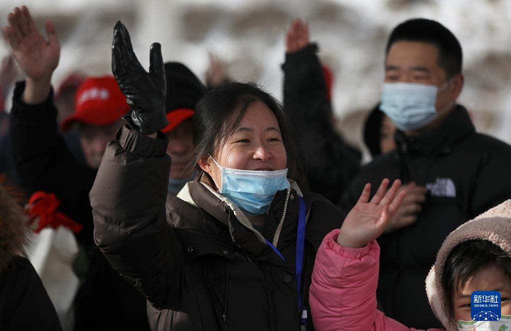 2月7日,甘肃省定西市外出务工人员与送行的人们挥手道别。