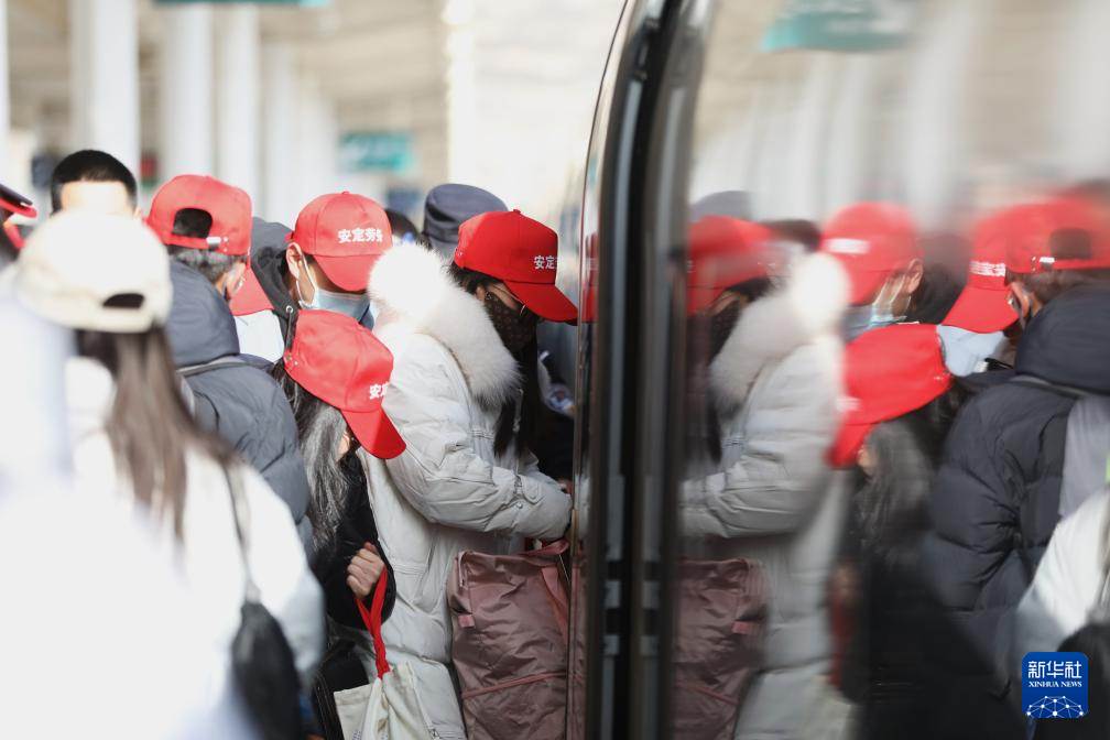 2月7日,甘肃省定西市外出务工人员登上专列。