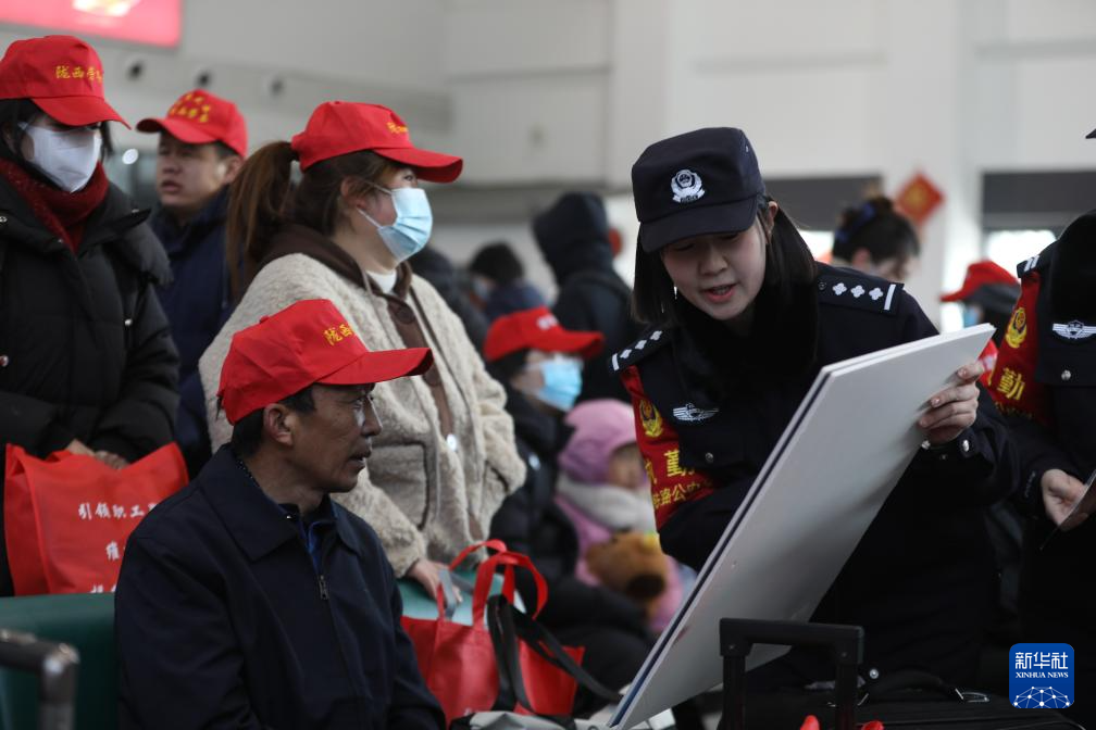 2月7日,兰州铁路公安处乘警在候车室为外出务工人员讲解出行注意事项。
