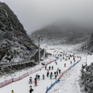 近年来,贵州省六盘水市充分利用高海拔“冷资源”优势,积极建设冰雪旅游设施,打造一批高标准滑雪场,以“冰雪+旅游”为特色,提供滑雪、雪上足球、雪地夜游等多种娱乐项目,吸引各地游客前来游玩。