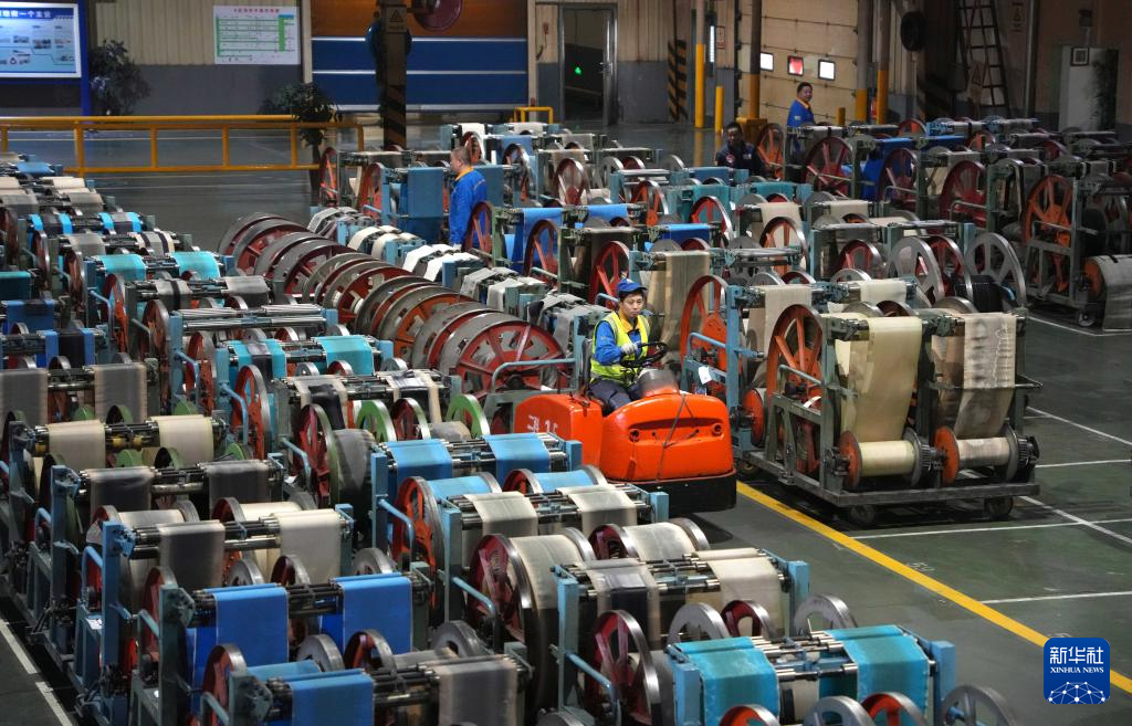 2月7日,工人在位于山东省广饶县的山东宏盛橡胶科技有限公司轮胎生产车间内工作。
