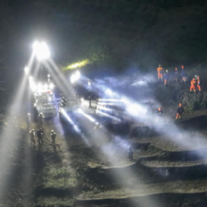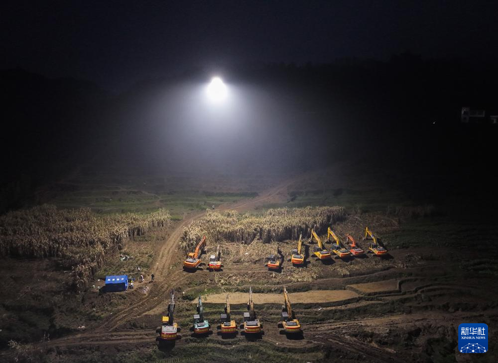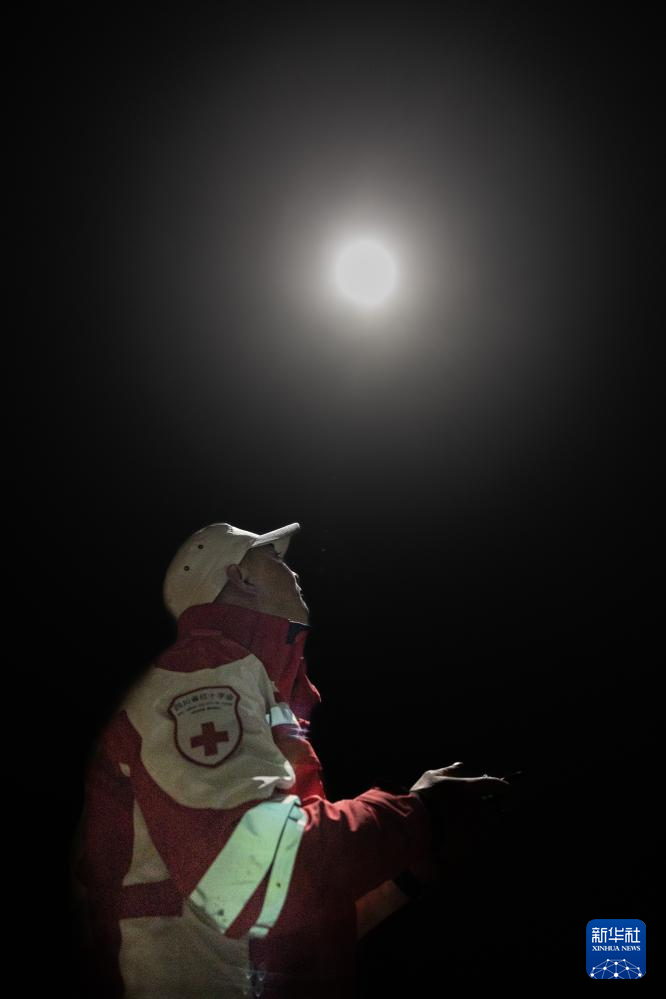 2月9日晚,搜救现场通过无人机进行空中照明(无人机照片)。