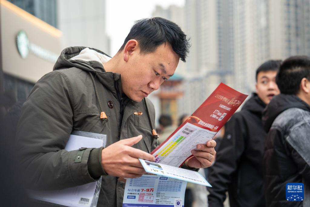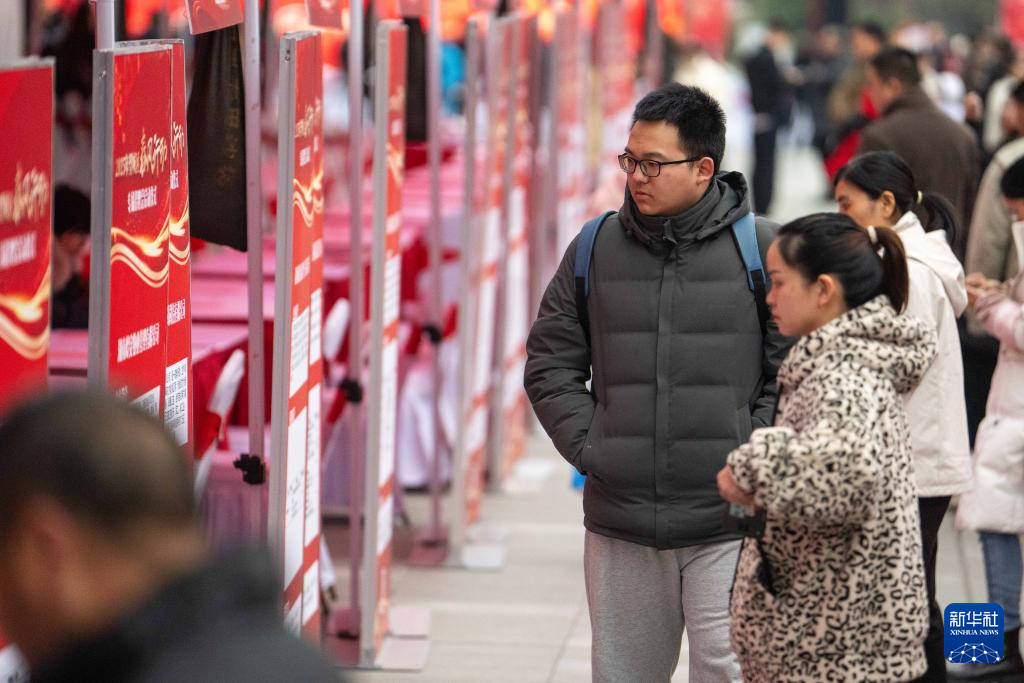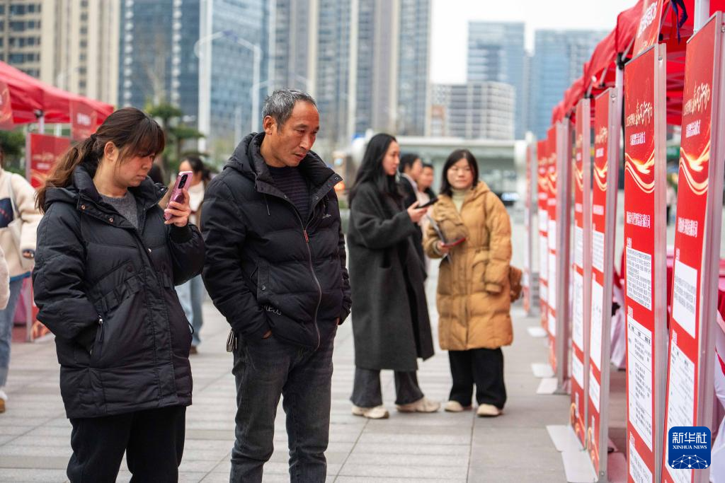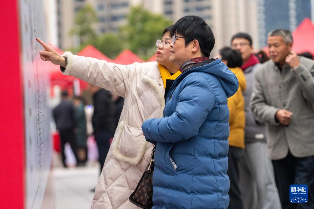 2月11日,市民在望城区龙湖月亮岛天街商场外坪了解岗位信息。