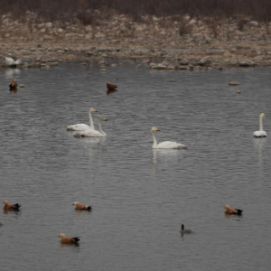 2月11日,一群水鸟在河北省井陉县境内的绵蔓河内觅食。