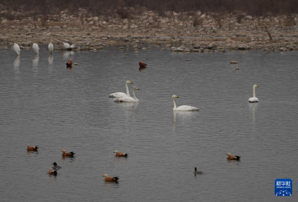 近日,成群的黑鹳、天鹅和野鸭子等水鸟飞抵河北省井陉县绵蔓河一带栖息觅食,形成一道靓丽的风景。近年来,井陉县持续推进生态环境治理,维护河湖生态平衡,吸引许多鸟类前来栖息。