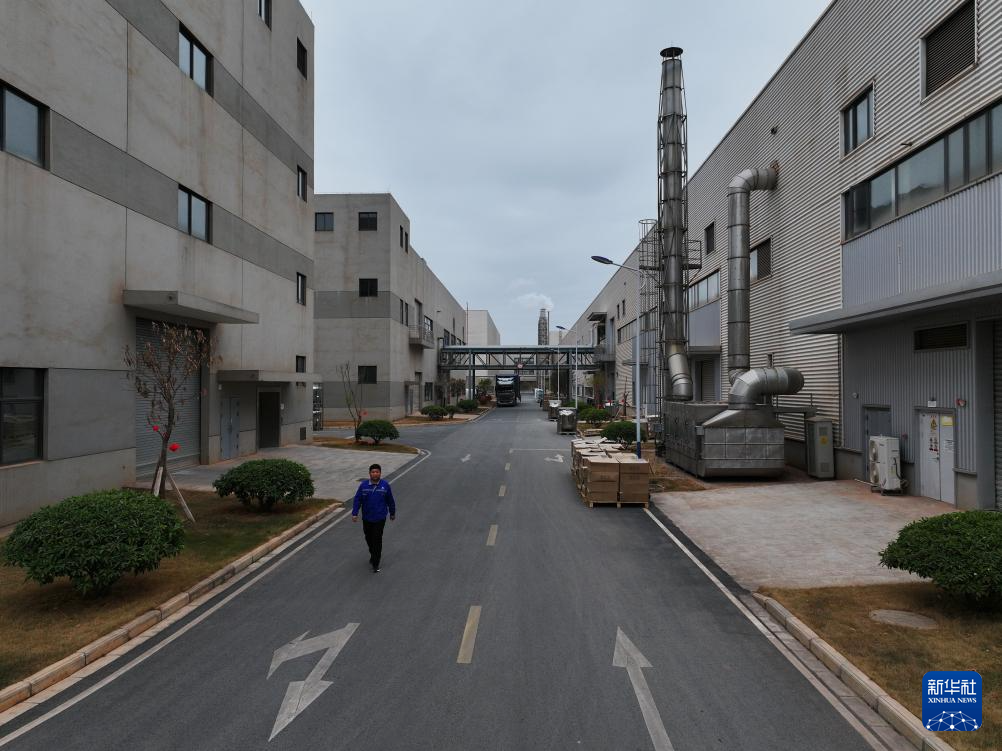 王东林走在宁福新能源厂区(2月9日摄,无人机照片)。