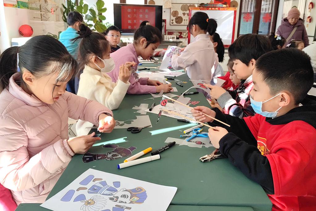 2月12日,小朋友在动手制作简单的皮影作品。新华网记者 王佳宁 摄pagebreak