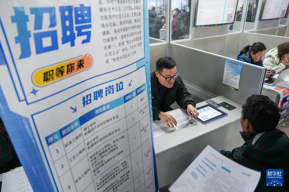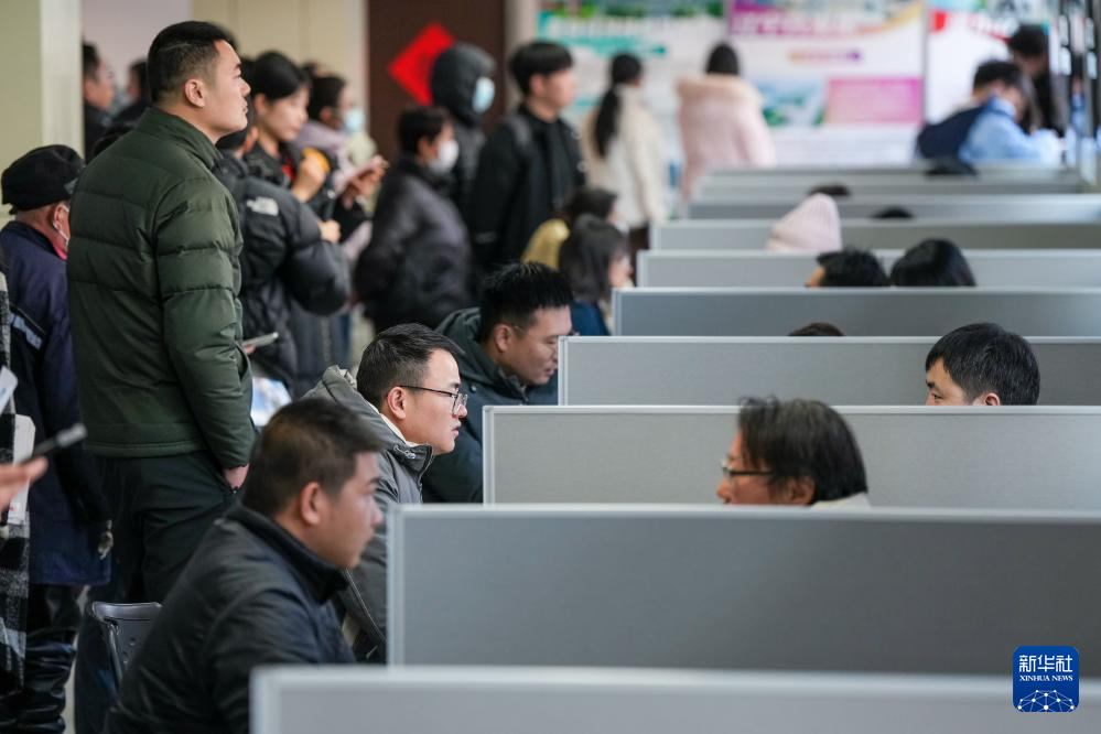 2月13日,求职者在南京人才大厦参加2025年新春综合招聘会。