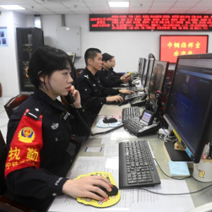 2月14日,在南宁铁路公安局南宁公安处南宁东站派出所,民警莫珊珊(左一)在接听旅客来电。