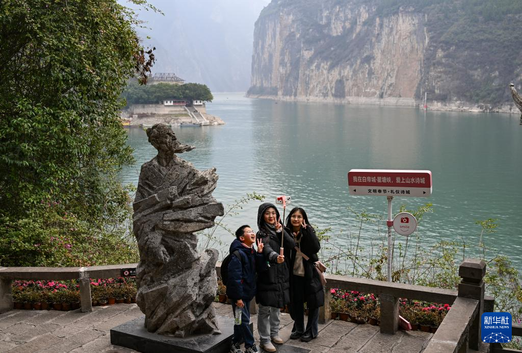 2月13日,游客在重庆奉节白帝城游览、拍照。