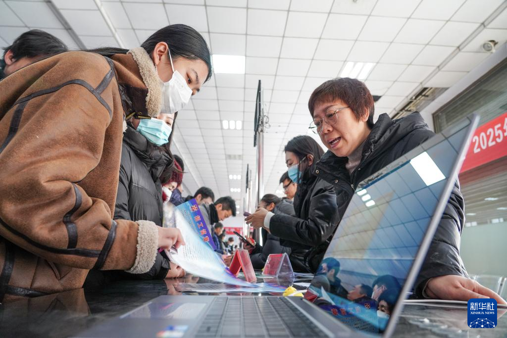2月13日,应聘者在2025南京新春首场综合招聘会上面试。