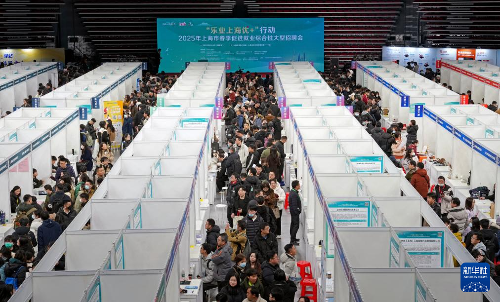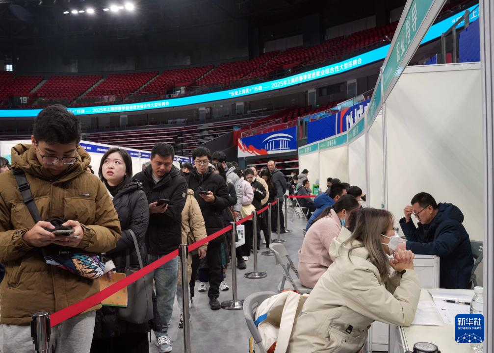 2月14日,“乐业上海优+”行动——2025年上海市春季促进就业综合性大型招聘会在上海体育馆举行。