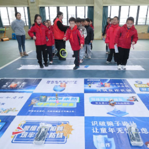 2月14日,龙泉街道潘公桥社区党员志愿者指导学生们玩套圈游戏,将反诈知识与趣味套圈游戏结合,多角度、多形式向学生们普及防骗、反诈知识。