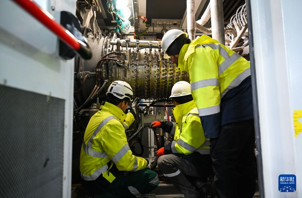 2月12日,中土两国工作人员在位于土耳其阿克萨拉伊省的图兹湖地下天然气储库扩建项目现场查看设备。