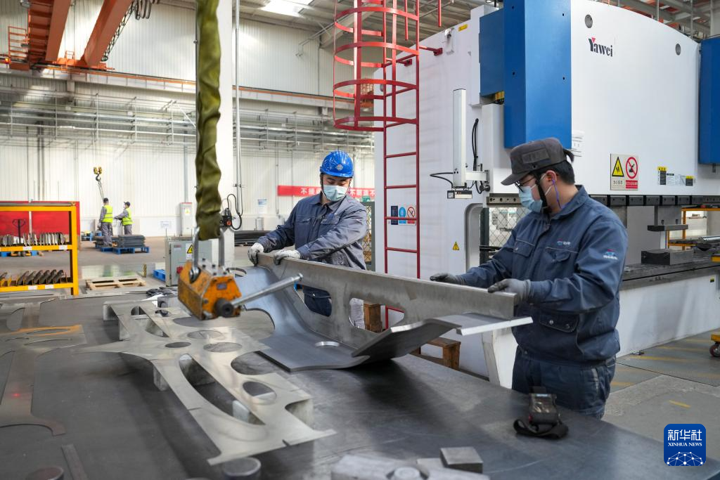 在京投装备河北京车智能制造基地,工作人员在加工地铁车辆零部件(2月14日摄)。