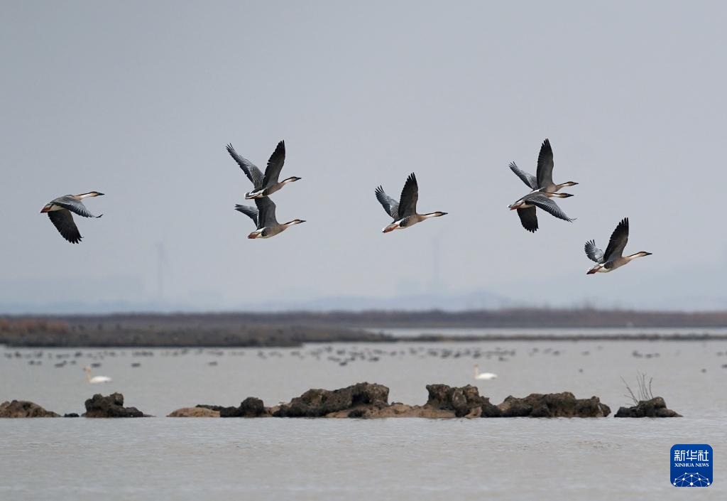 近日,大批越冬候鸟在江西鄱阳湖区陆续集结,等待水位上涨和气温回升后启程北迁之旅。