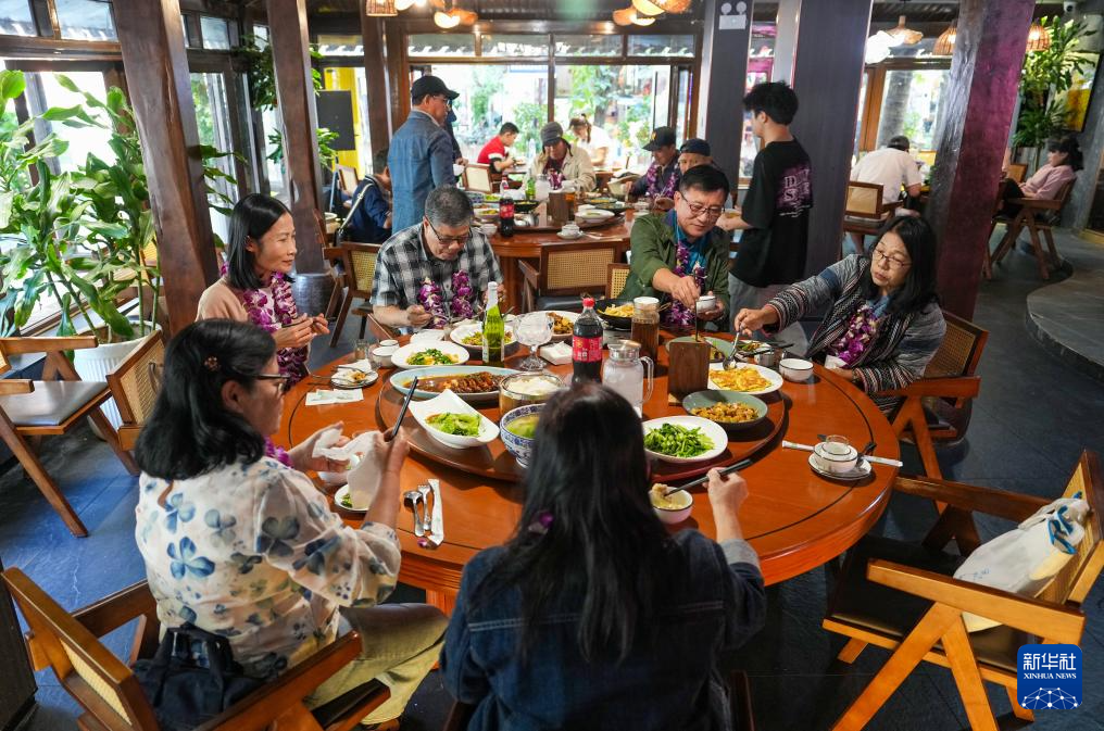 2月19日,游客在西双版纳一餐厅用餐。