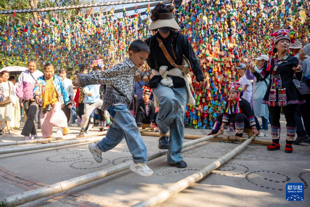2月19日,游客在西双版纳一景区参加体验项目。