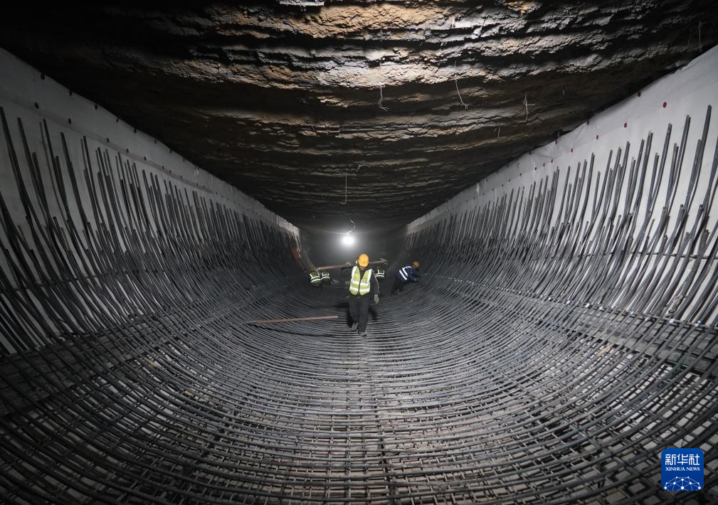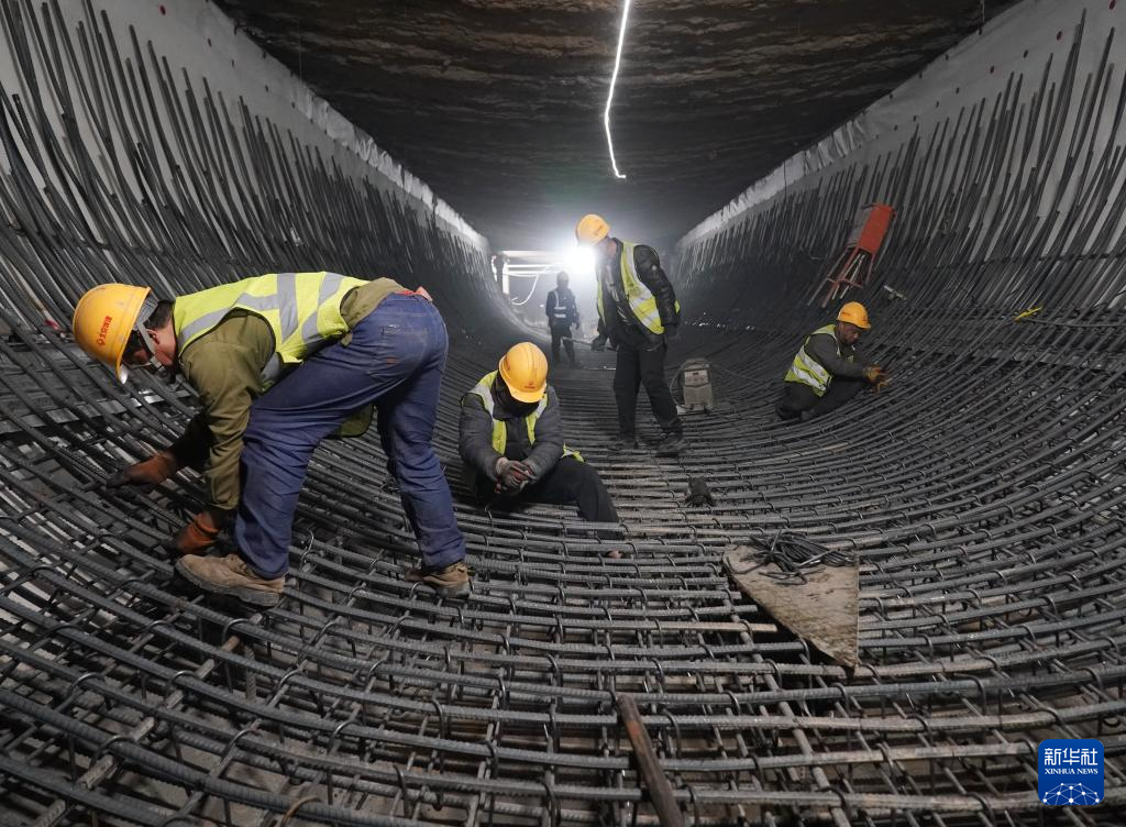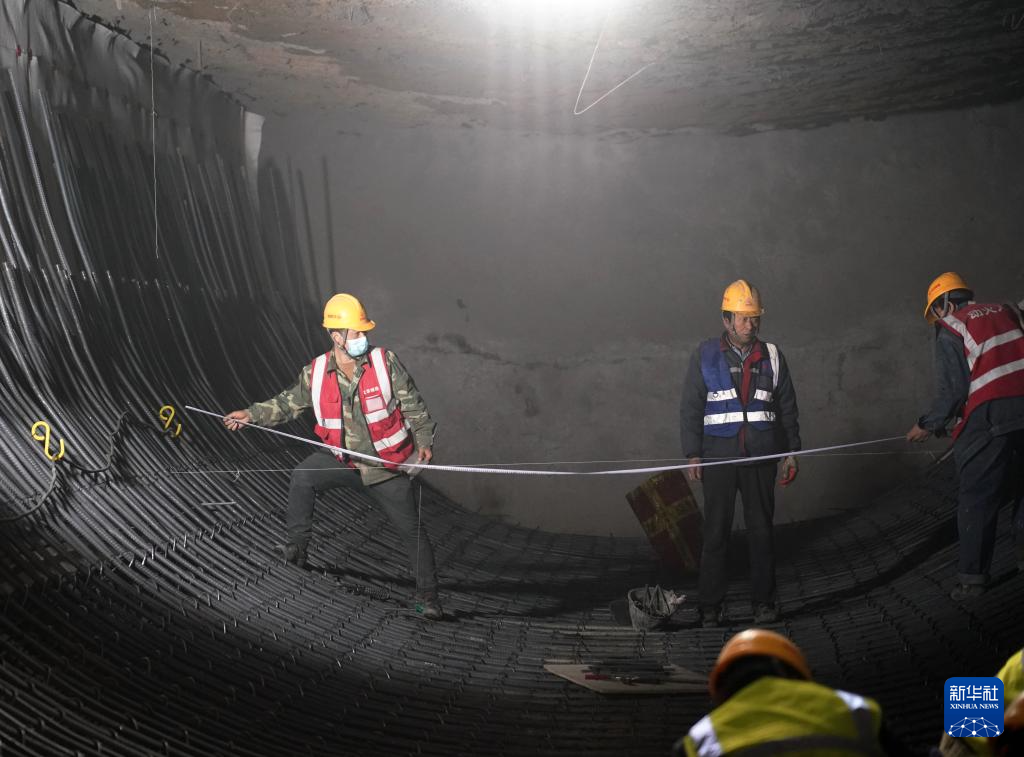 2月19日,工人在北京城建集团承建的北京轨道交通22号线红庙站建设现场施工作业。