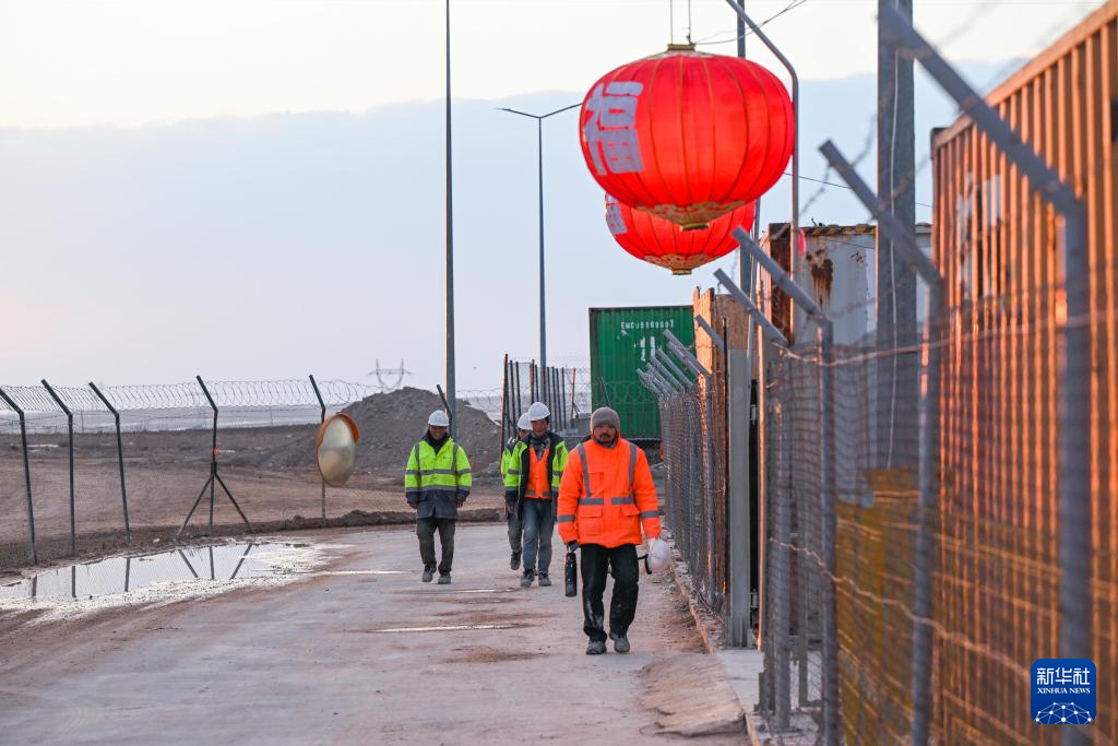 2月12日,中土两国员工在土耳其阿克萨拉伊省的图兹湖地下天然气储库扩建项目地挂灯笼庆祝元宵节。