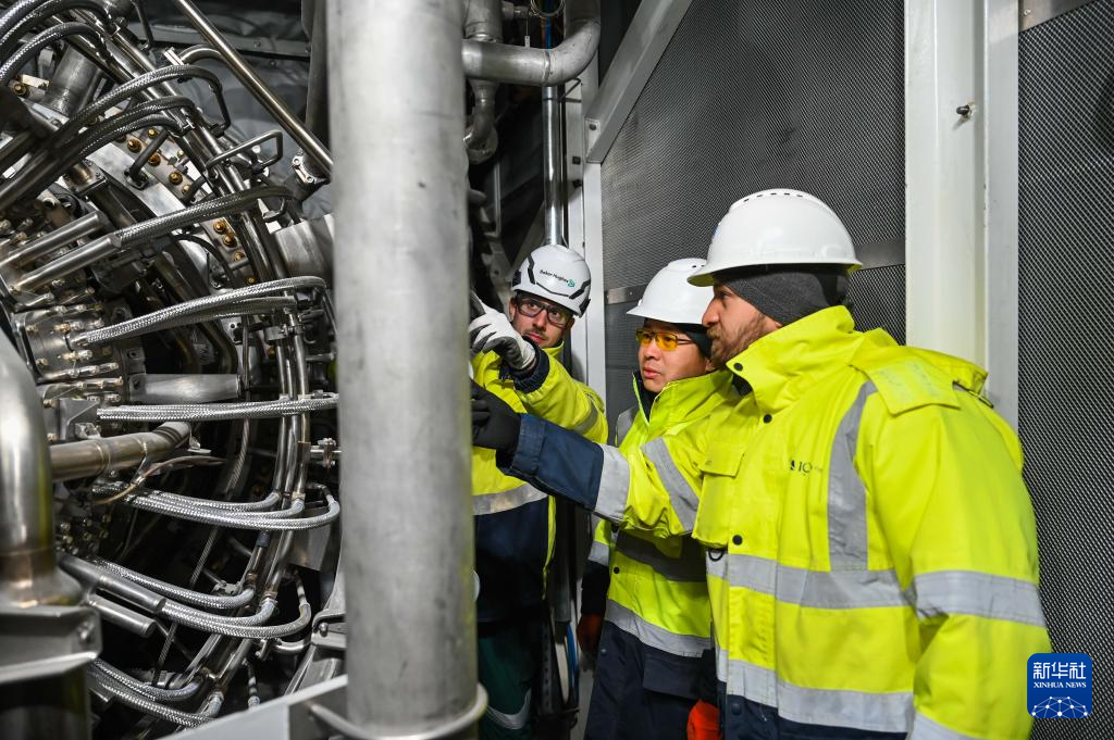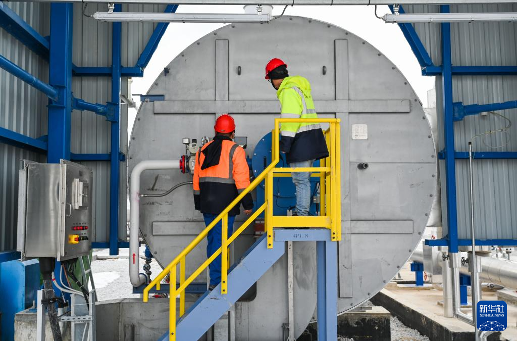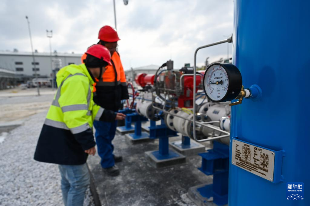 2月12日,中土两国工程师在土耳其阿克萨拉伊省的图兹湖地下天然气储库扩建项目地面场站查看设备。