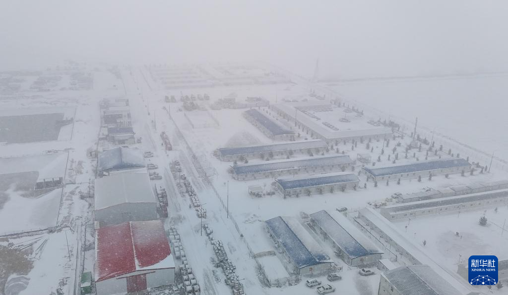 这是2月13日在土耳其阿克萨拉伊省拍摄的雪中的图兹湖地下天然气储库扩建项目现场(无人机照片)。