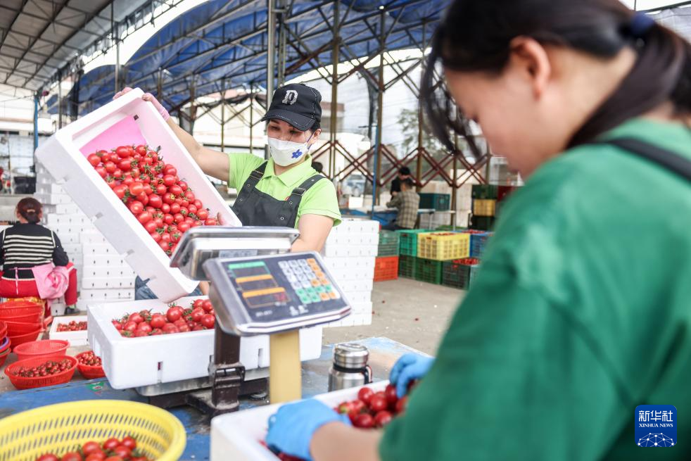 近日,海南定安县的圣女果进入采摘季,田间地头一片红火景象。今年,定安县圣女果种植面积近万亩,产量较往年大幅提升。