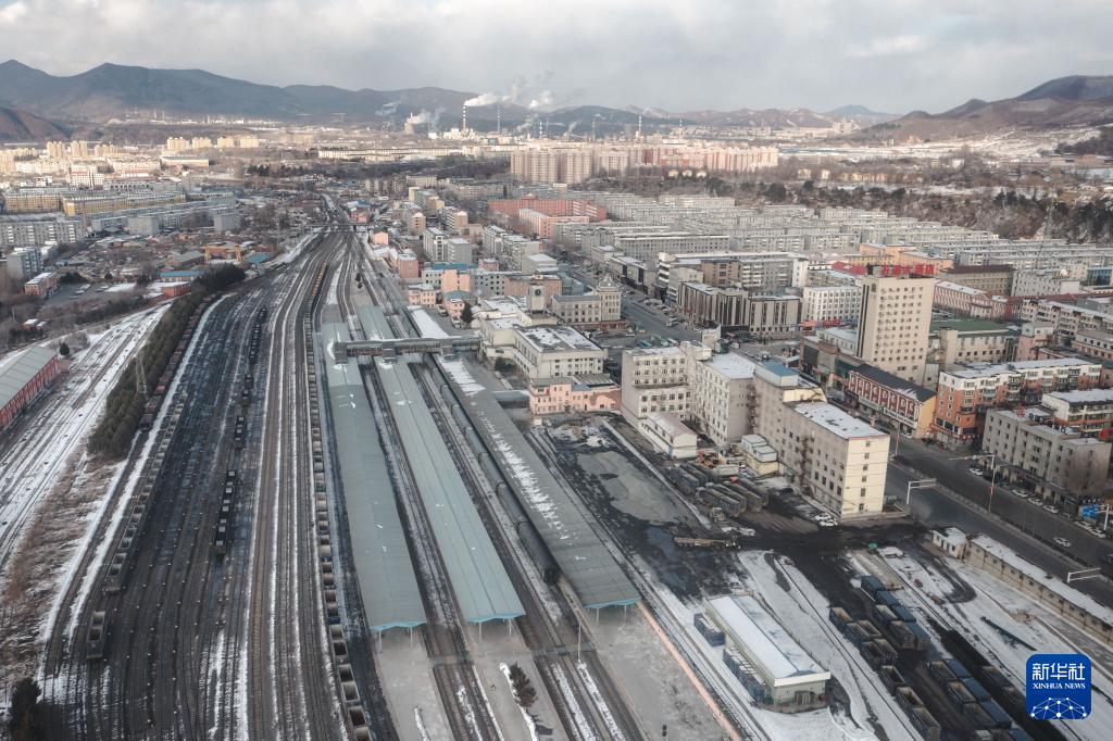 这是无人机拍摄的一辆列车等待驶离通化站(2月19日摄)。
