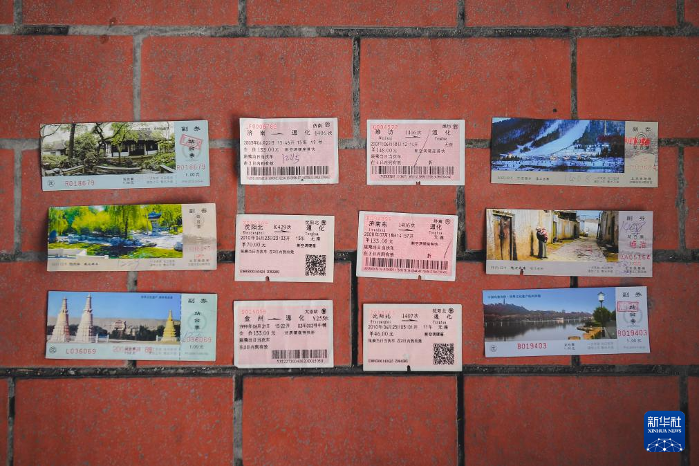 这是各地抵达通化的老式纸质车票和通化站站台票(2月20日摄)。