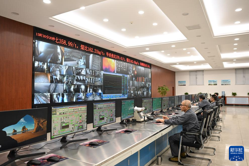 2月20日,工作人员在内蒙古兴安盟乌兰浩特市乌兰浩特钢铁有限责任公司智控中心监测高炉运行情况。
