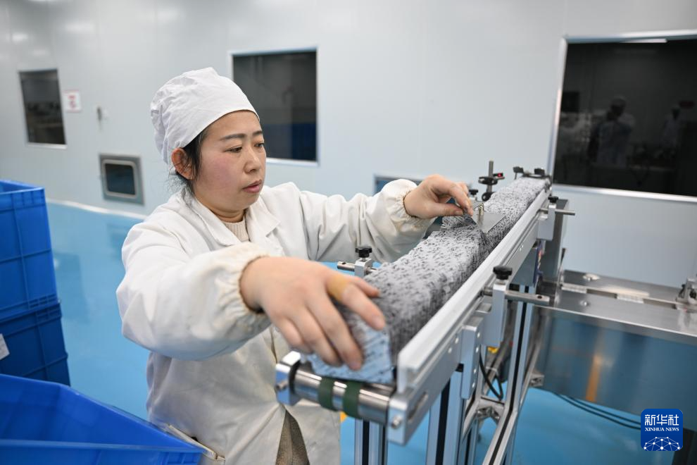 2月21日,工人在内蒙古兴安盟乌兰浩特市内蒙古奥特奇蒙药股份有限公司车间放置药品。