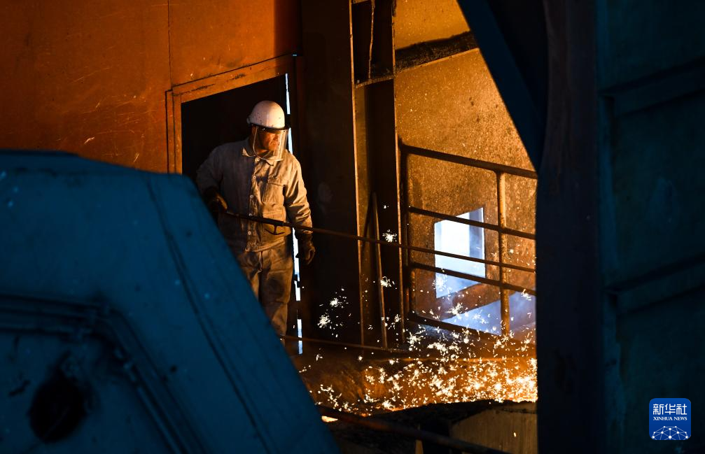 2月20日,工人在内蒙古兴安盟乌兰浩特市乌兰浩特钢铁有限责任公司炼铁厂作业。