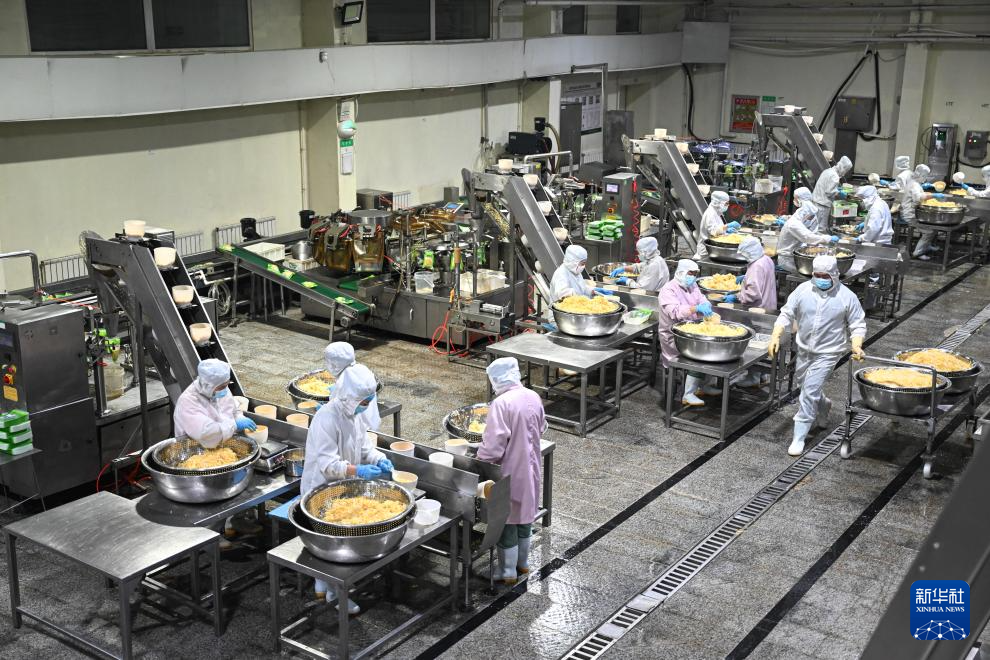 2月20日,工人在内蒙古兴安盟乌兰浩特市内蒙古科沁万佳食品有限公司蔬菜制品车间分装酸菜。