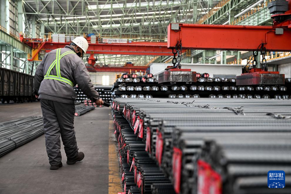2月20日,工人在内蒙古兴安盟乌兰浩特市乌兰浩特钢铁有限责任公司双高棒车间对产品进行扫码出库。
