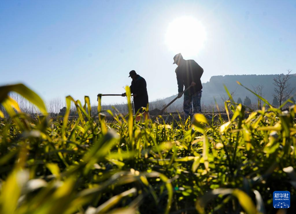 2月20日,河北省遵化市刘备寨乡牛角峪村农民在麦田劳作。