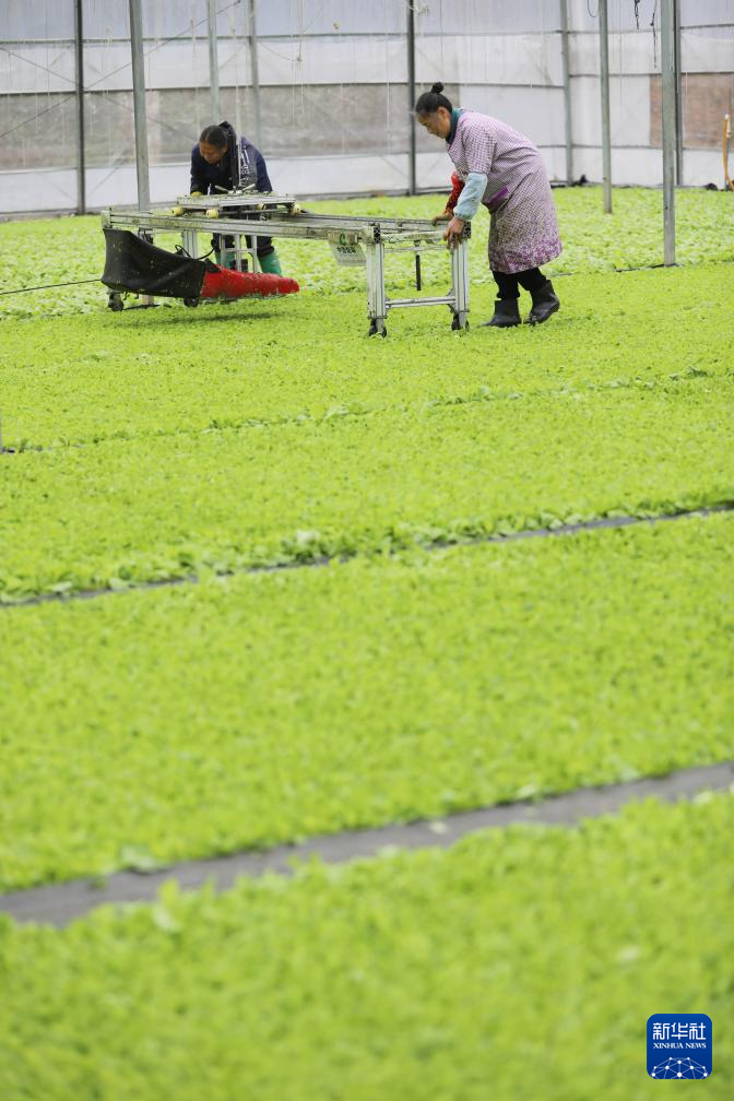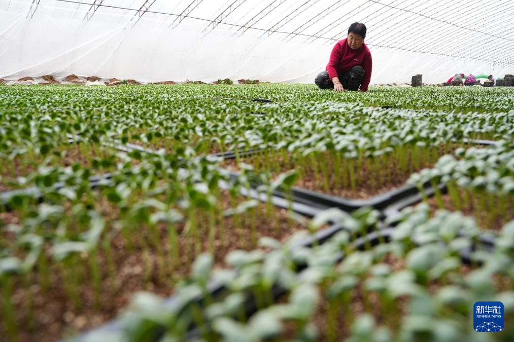 2月21日,湖南省永州市道县梅花镇社湾村村民在大棚里修剪秧苗。