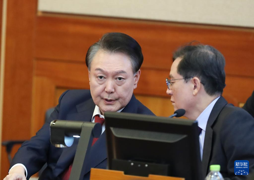 2月20日,尹锡悦(左)在韩国首尔宪法法院出席总统弹劾案庭审。