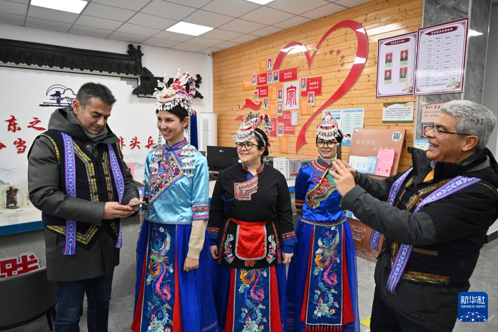 2月20日,意大利客人在霞浦县溪南镇半月里村参观畲族婚俗馆。
