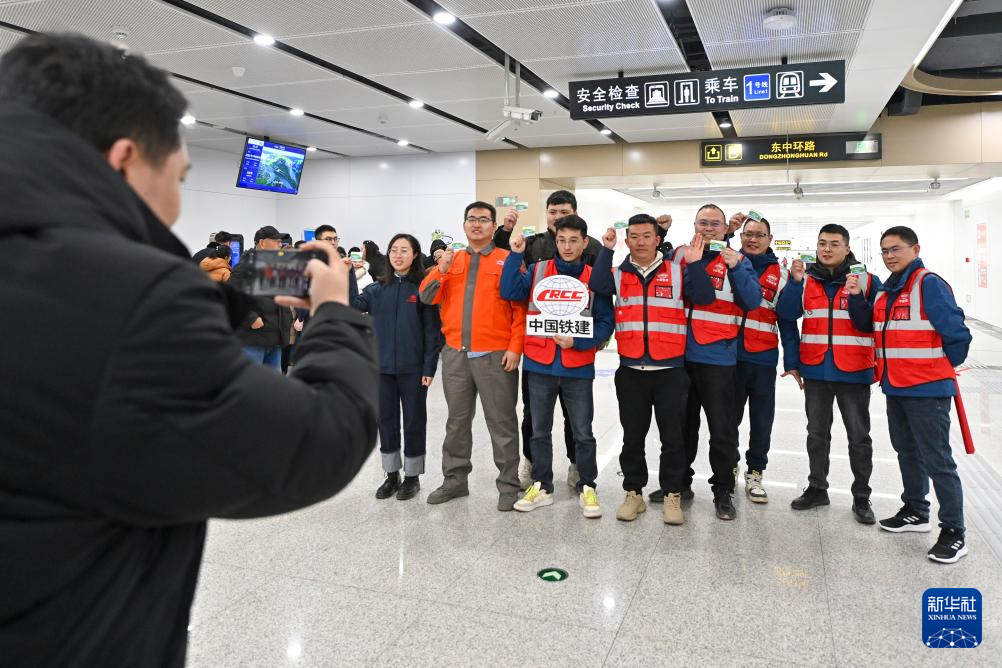 2月22日,参与建设者在太原轨道交通1号线许坦东街站合影。