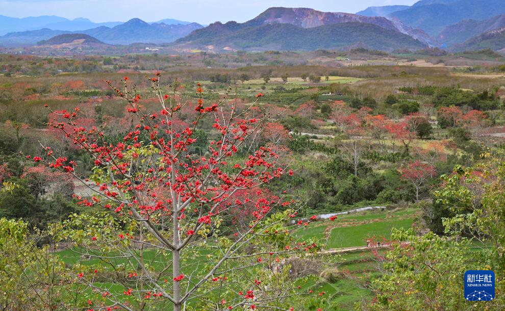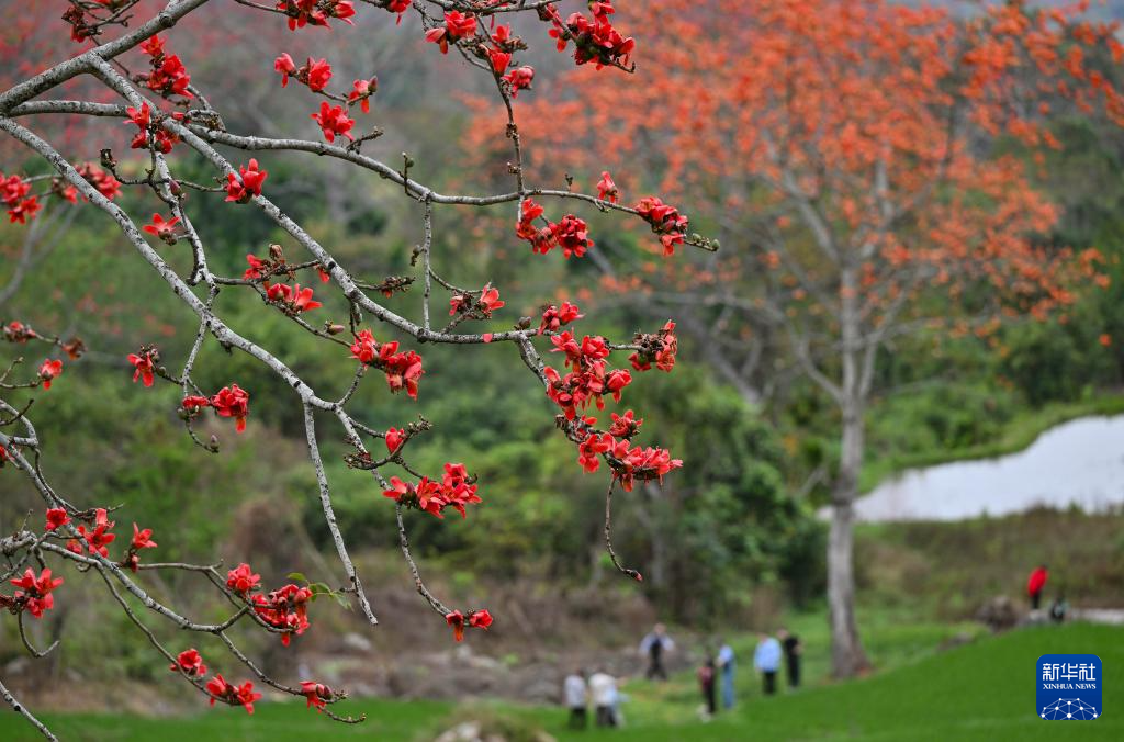 时下正是海南木棉花盛放的季节。在海南省昌江黎族自治县,大批游客前来踏青赏花,感受春天的气息。