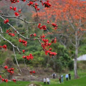 2月22日,海南昌江盛放的木棉花吸引了大批游客前来观赏。